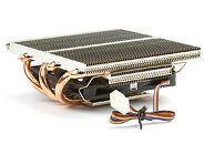 The Kozuti CPU Cooler is equipped with a total of three 6mm heat pipes. Applying the newly developed S.F.M.S (Stealth Fan Mounting Structure) the heatpipes are arranged in a low profile oval structure. This enables to provide space for the 80 x 80 x 10mm fanmotor in between the oval structure and below the fins, making it merely 40mm in height. This positions the cooler to be our most compact and slim cooler fit for HTPCs and slim chassis systems. Active cooling is achieved by the 80 x 80 x 10 mm slim fan the speed of 800 rpm (± 30%) - 3.300 rpm (± 10%), generating an air flow of 6.0 CFM ~ 24.82CFM = 10.2 m³ / h ~ 42.2 m³ / h at a noise level of 8.2 ~ 32.5 dBA.