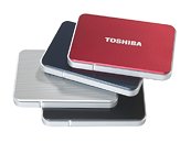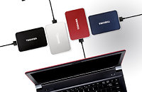Toshiba’s STOR.E EDITION comes in four different colours – red, blue, silver and black – and a casing with a grooved texture. The storage capacity of up to 1TB is large enough to house huge digital media libraries.